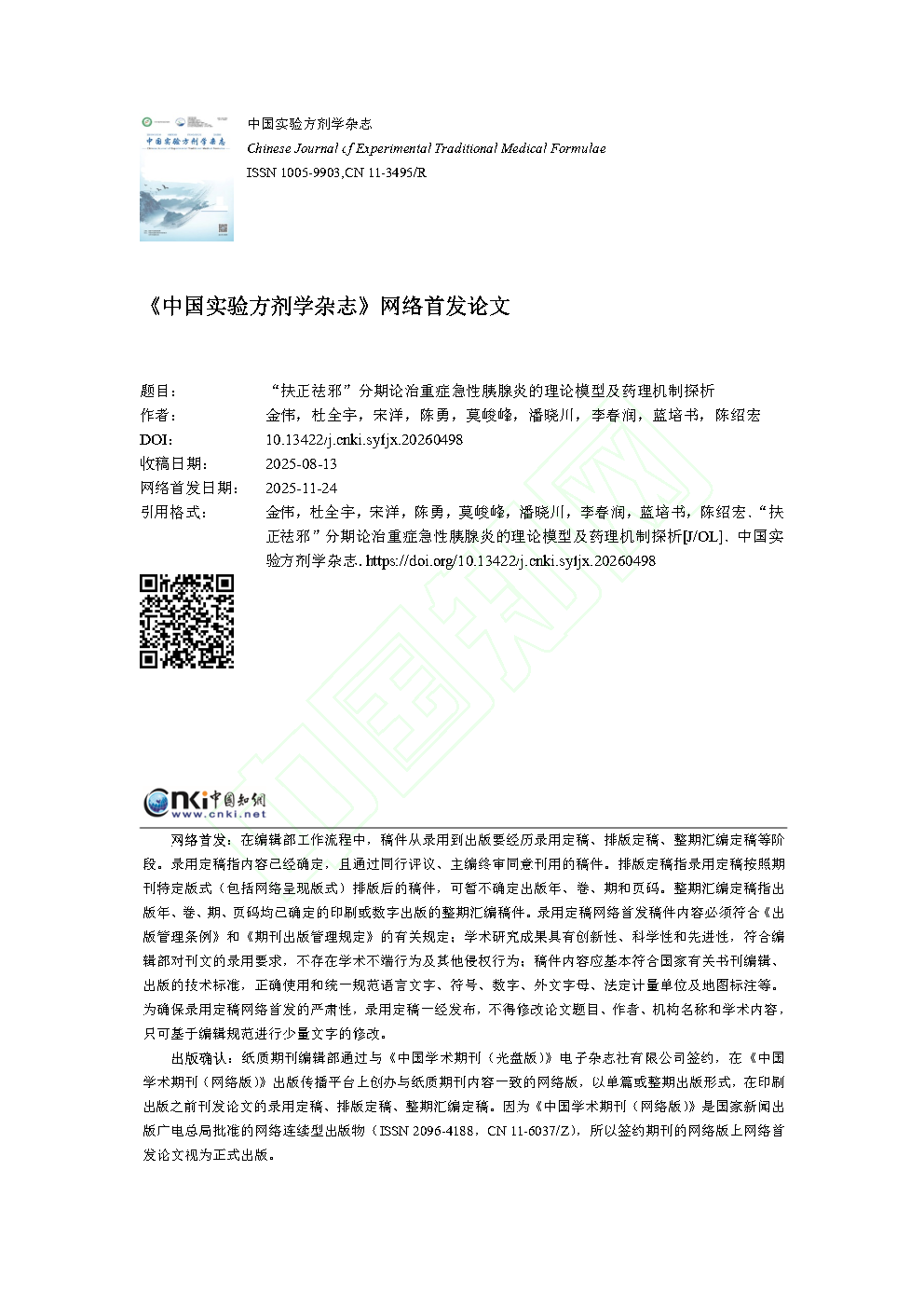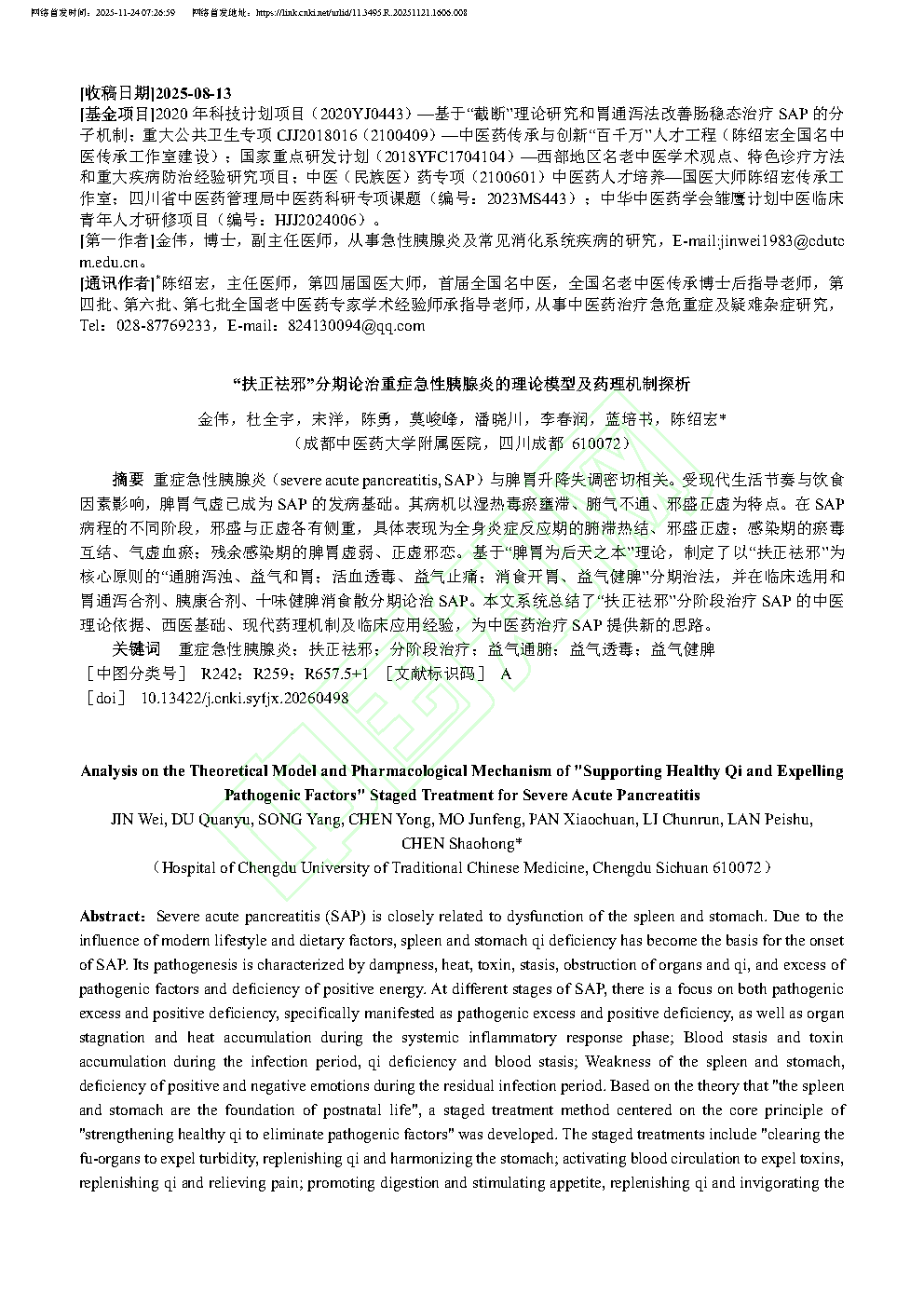 原文下载:“扶正祛邪”分期论治重症急性胰腺炎的理论模型及药理机制探析