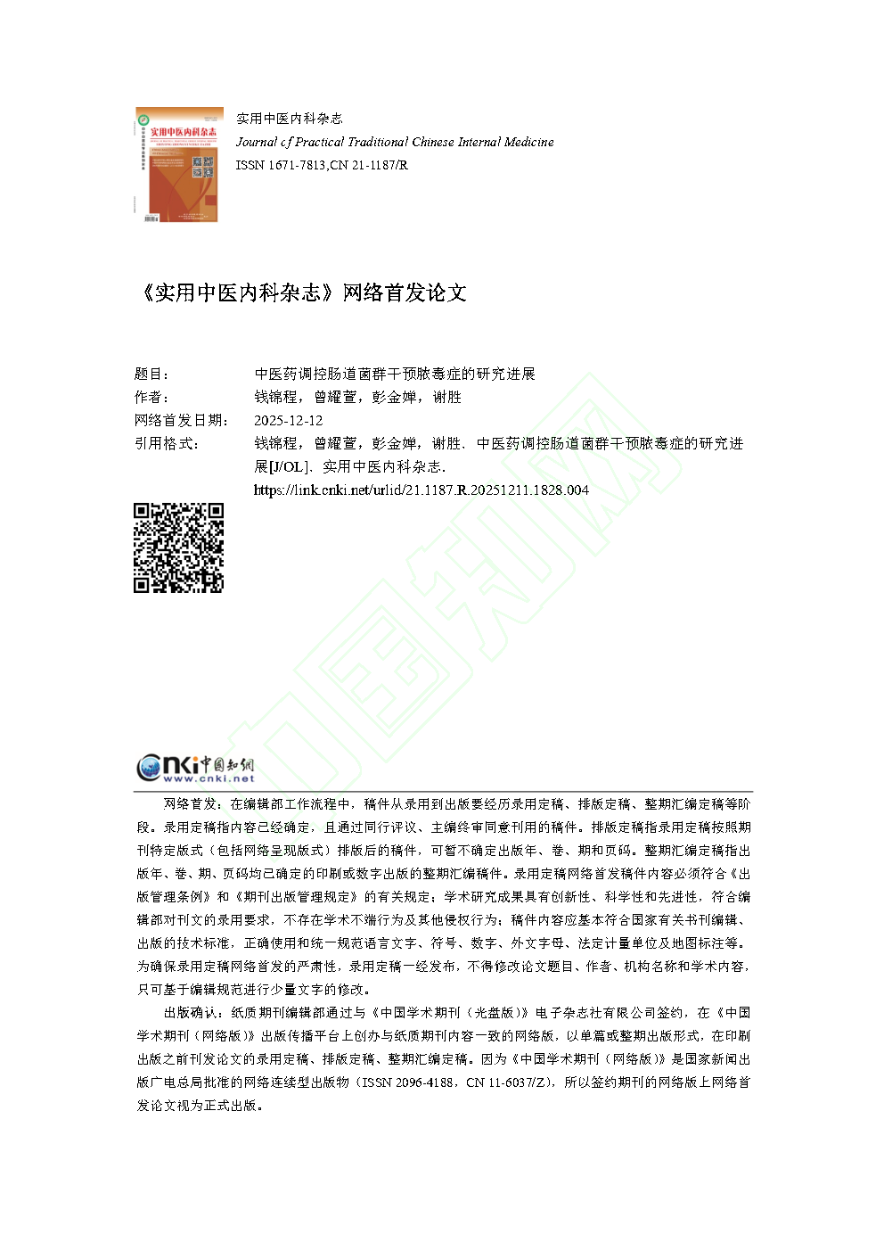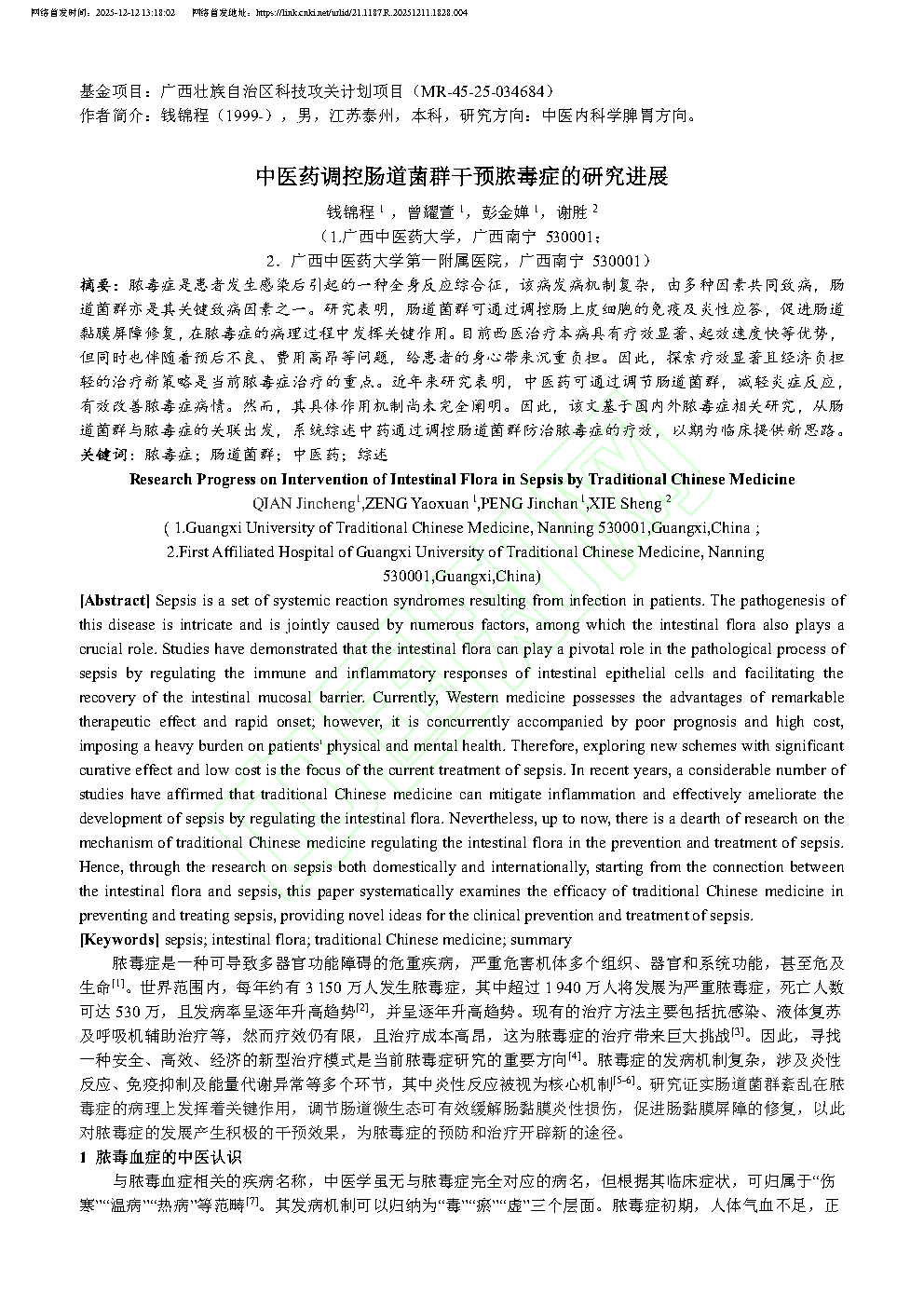 原文下载:中医药调控肠道菌群干预脓毒症的研究进展